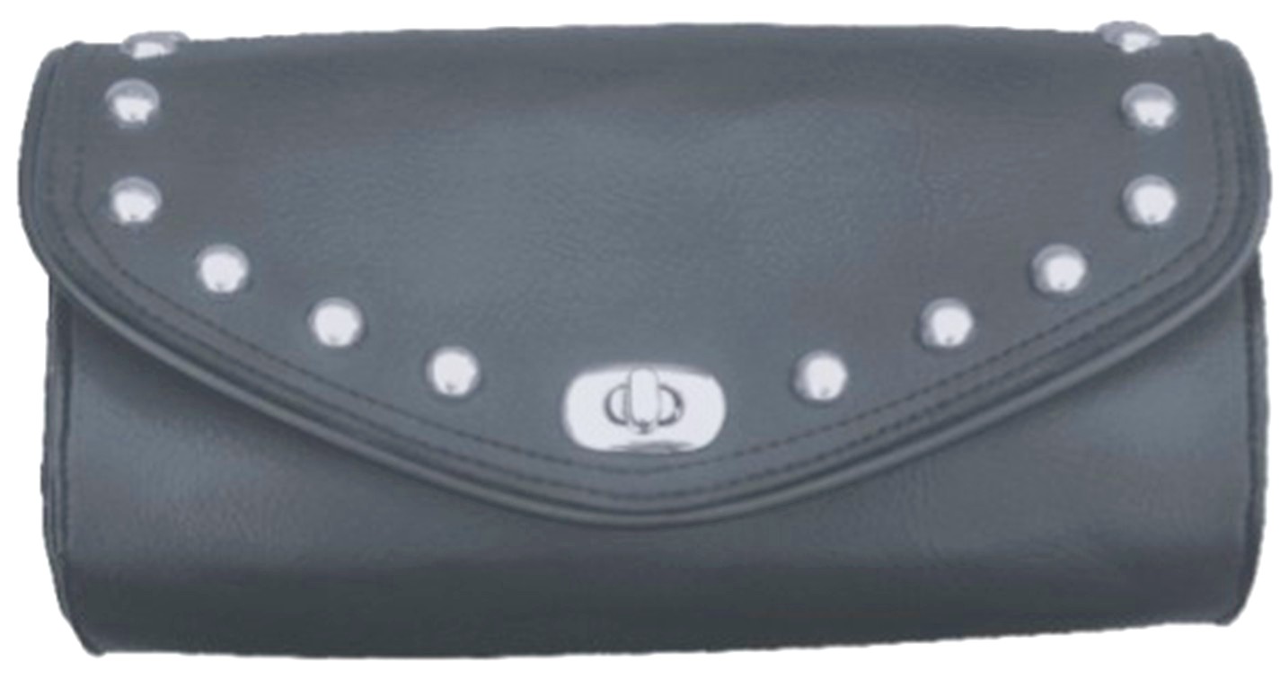 Black Leather Windshield Bag – Silver Studded Trim & Silver Twist Close Clasp