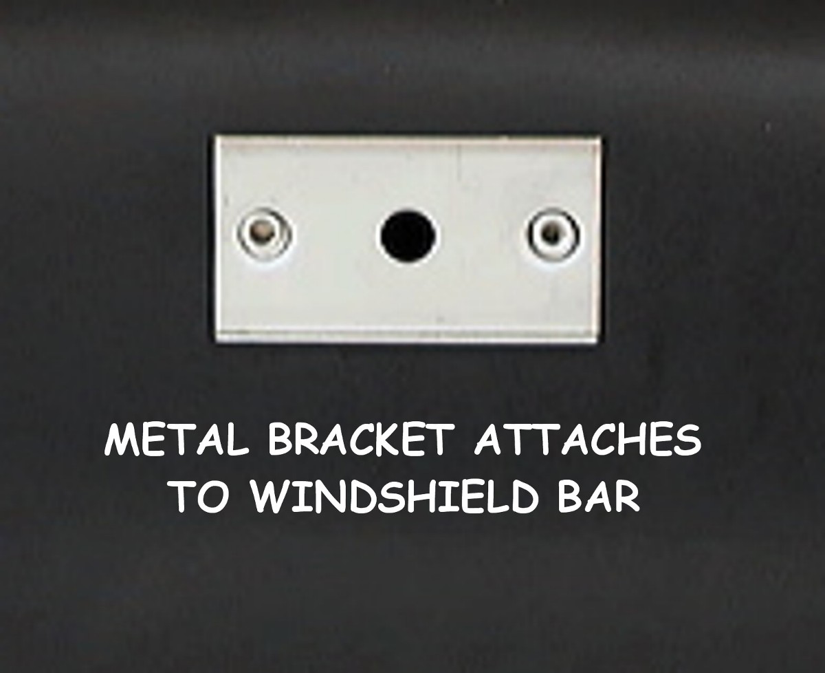 ►Universal fit: The back of the bag has a 2 inch long 1 inch wide metal bracket with horizontal edges that are raised to make a groove with a hole in the center to attach to any windshield with a metal strip that has a center bolt. (American or Metric bike)
