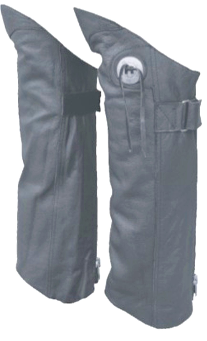These black biker chaps / leggings are made from analine cowhide leather for that extra soft lavish feel. A great addition to your biker wardrobe for when chaps are to much. Designed to cover just above the knee and down to the top of your shoes. These leggings are fashioned in the traditional style with an attractive conchos. These leggings have a leather strap with hook & loop closure on each leg. The lining adds extra warmth and protection.