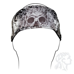 The ZANheadgear® DaVinci Skull Headband features moisture wicking nylon lined with a terry cloth sweat band to keep you cool. At 35" long and 3.5" wide, our Headband ties to fit any size head. Exclusive ZANheadgear designs.