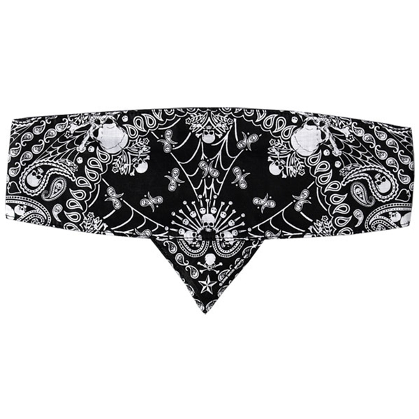 Premium head wrap with a terry cloth sweatband, double-sided tail & hook & loop adjustable closure with tuck in.
