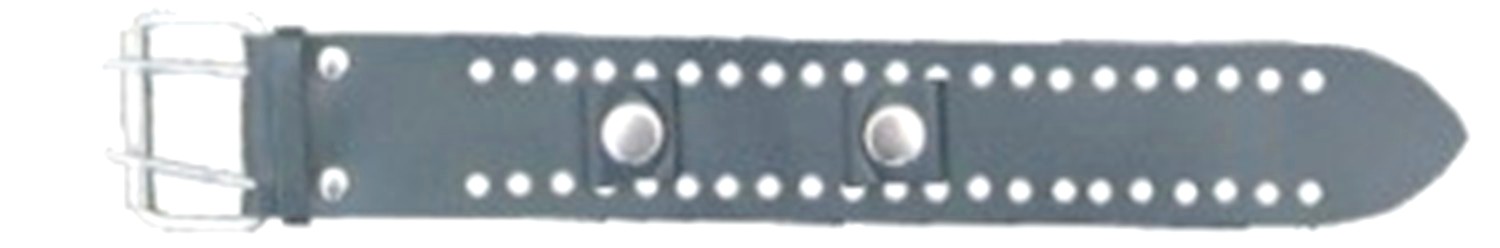 This black leather watch band is adorned with two silver studs above & below where the watch head goes, A roller buckle style closure allows for an adjustable fit.