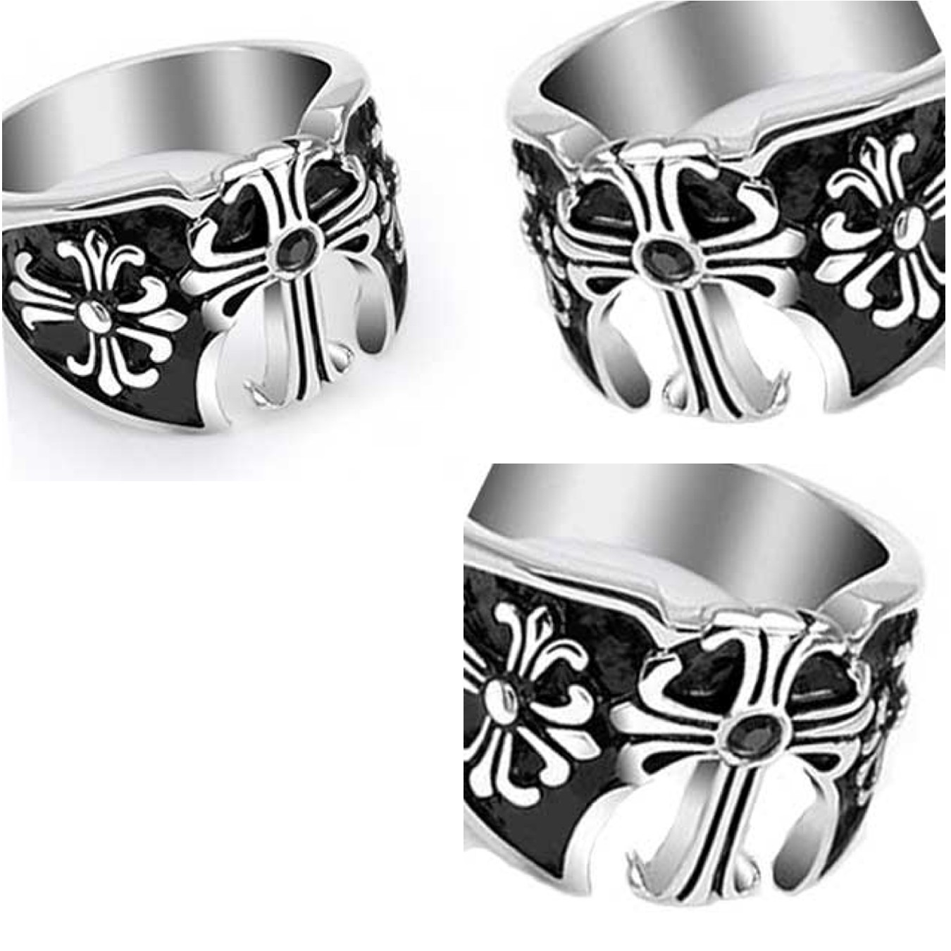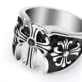Details: Three Medieval Crosses,Two on The Sides and One in The Center with a Black CZ all on Black Plated Center