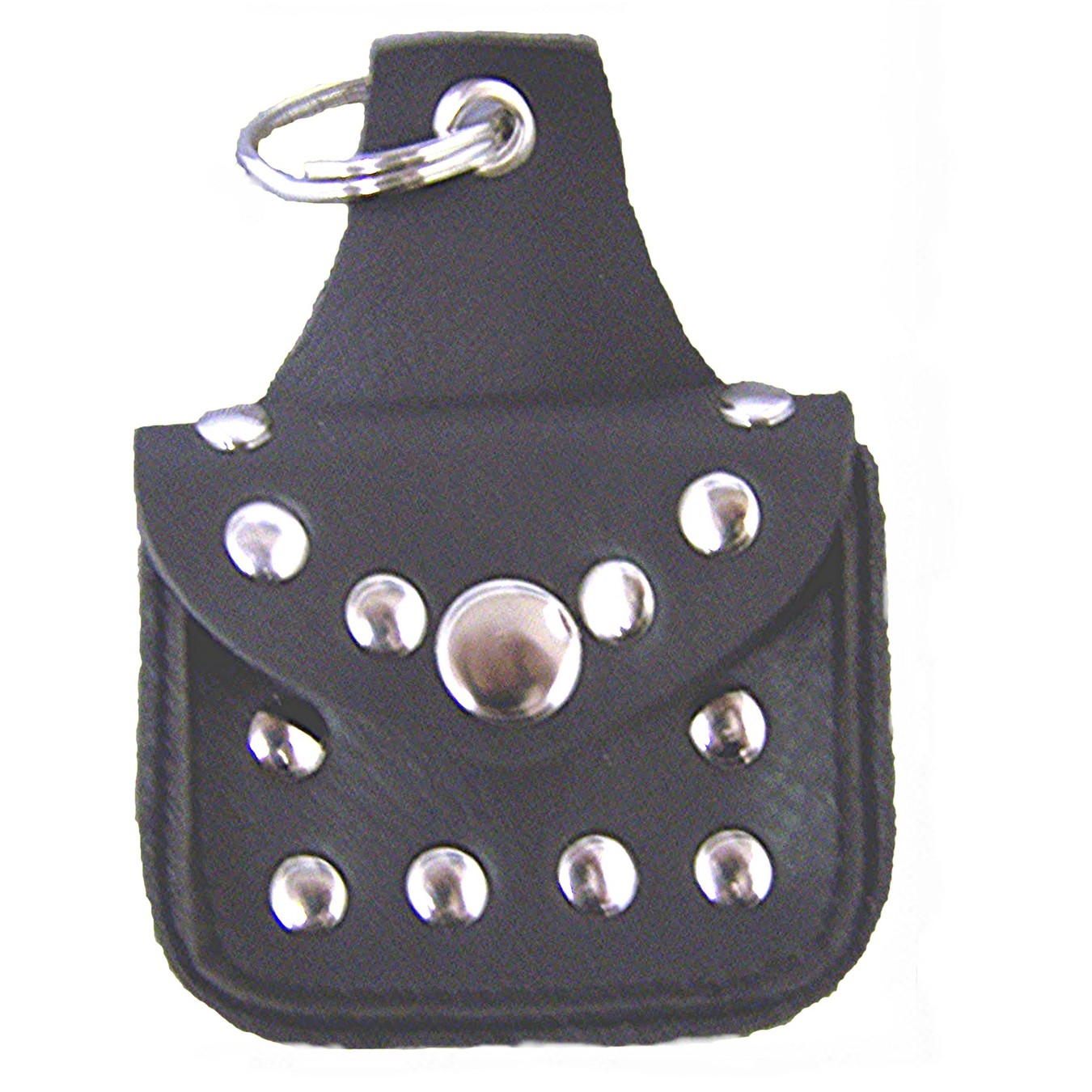 Adorable biker key chain in the shape of a miniature saddle bag. Small items can be secured in the bag with the snap closure