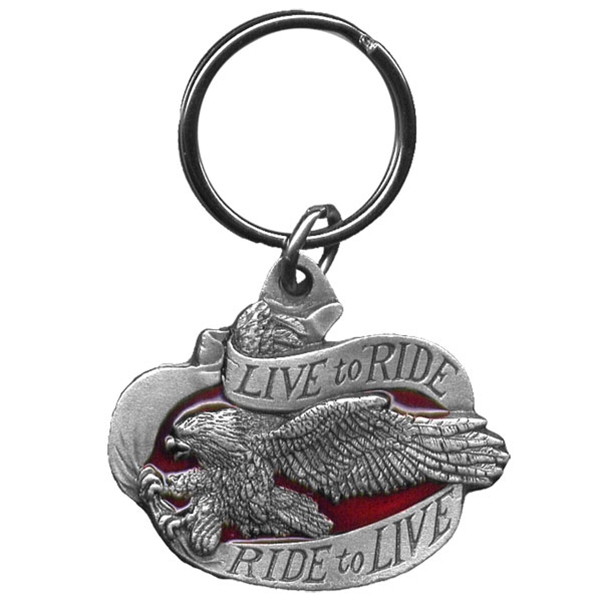 Finely detailed pewter live to ride – ride to live eagle key chain