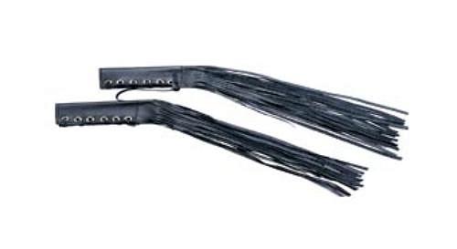 Black leather laced motorcycle brake & clutch cover with fringes – pair