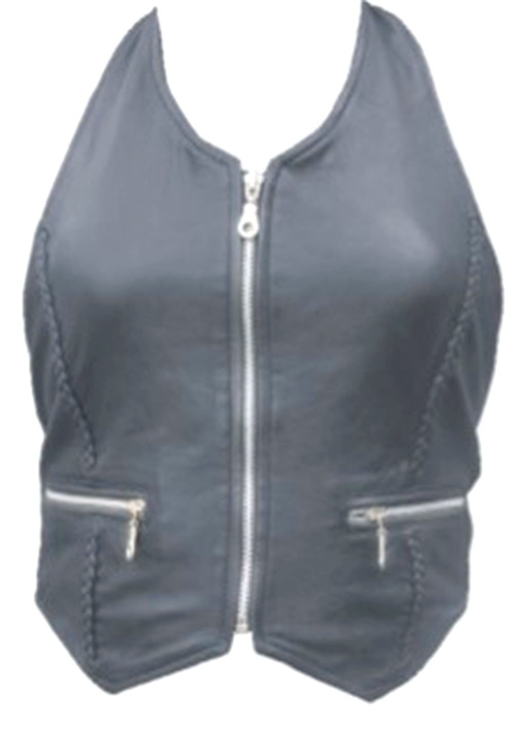 This black leather halter top is made from lambskin leather. Ultra soft to the touch, this top has braided leather trim, and elastic material in the back. The zip up front can be worn as daring as you want! The front zipper and pocket zippers are heavy duty YKK brand.