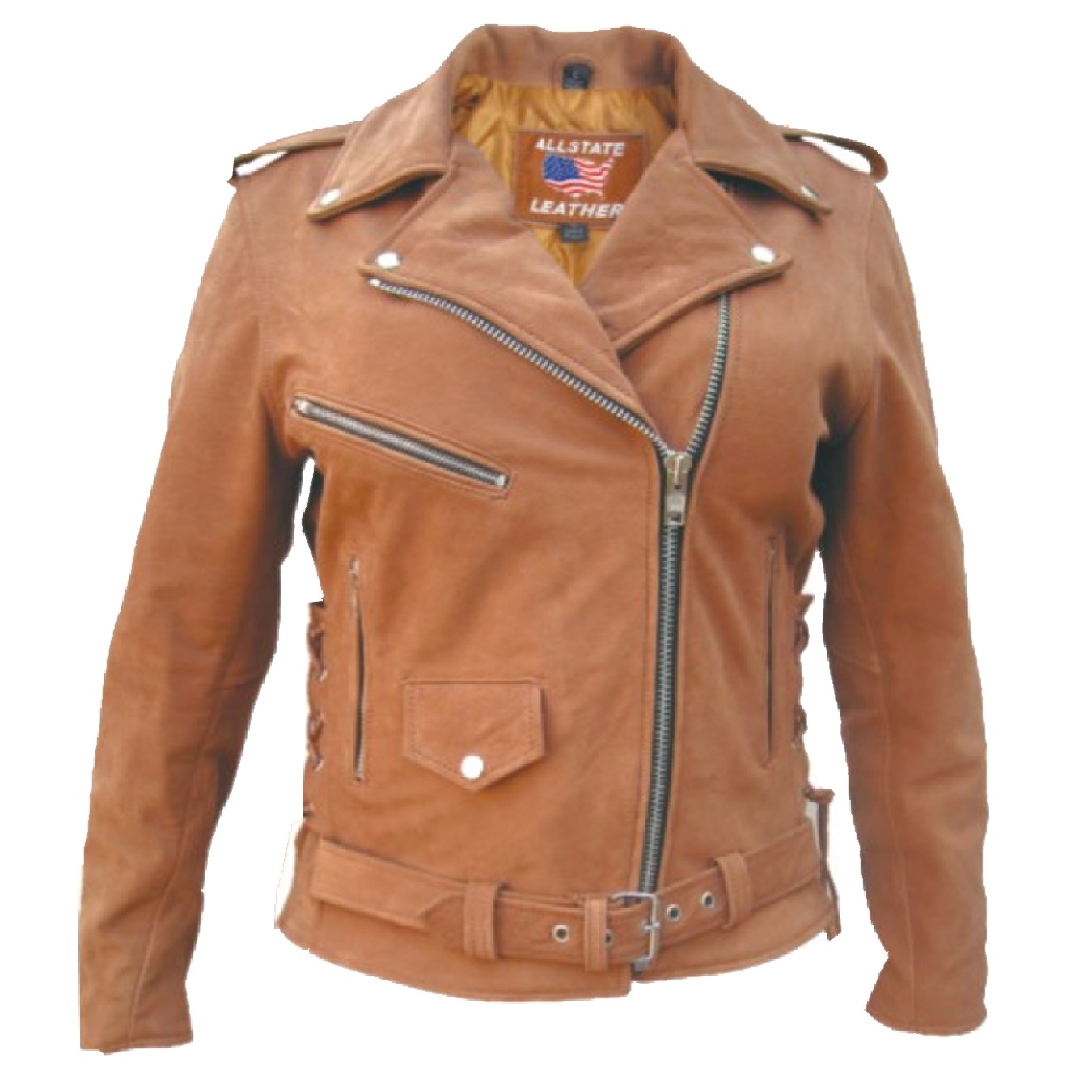 Ladies Classic Brown Leather Motorcycle Jacket - Sizes XS to 5XL