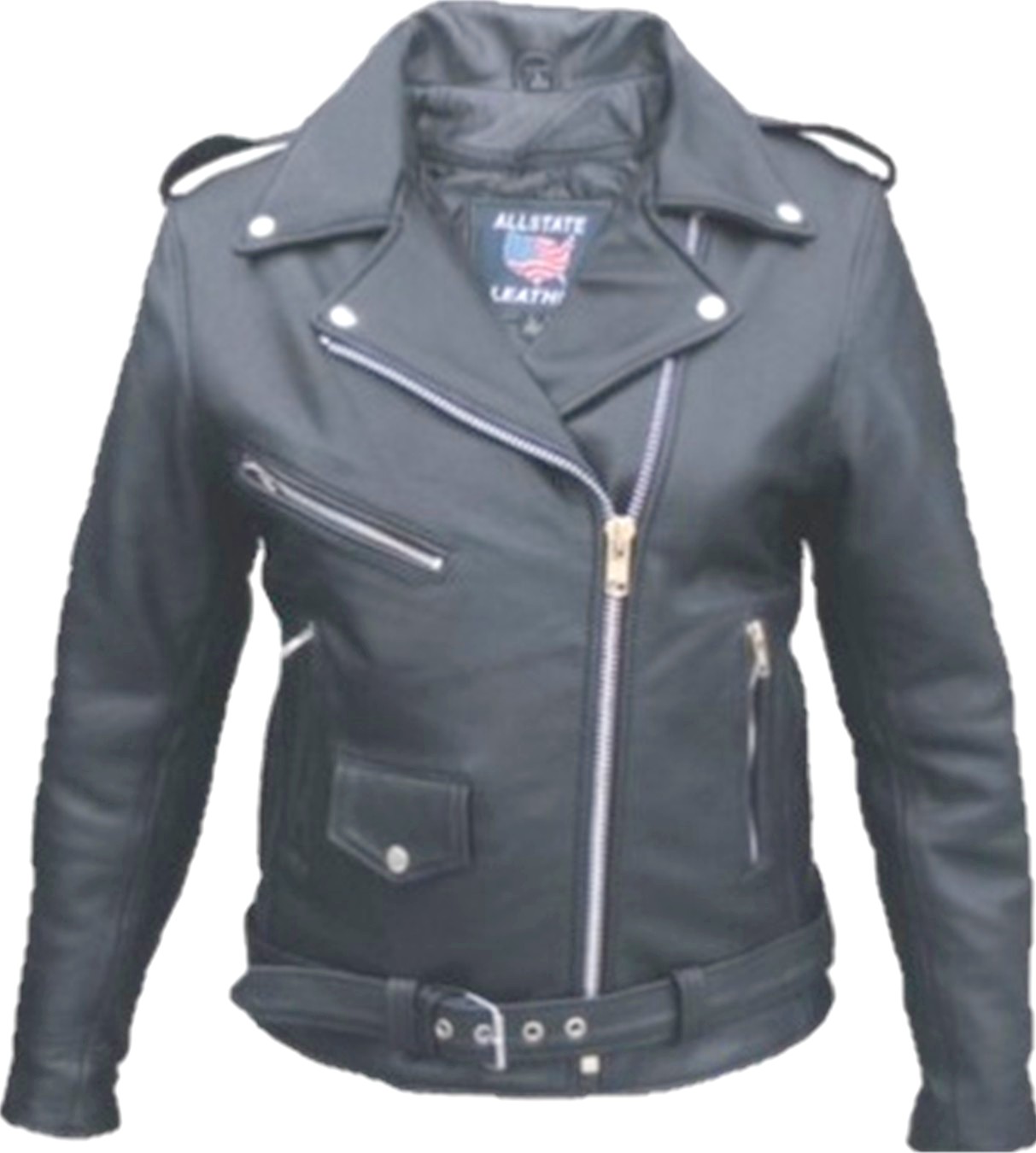 Ladies Black Drum Dyed Naked Cowhide Leather Motorcycle Jacket with removable belt - Sizes XS to 5X