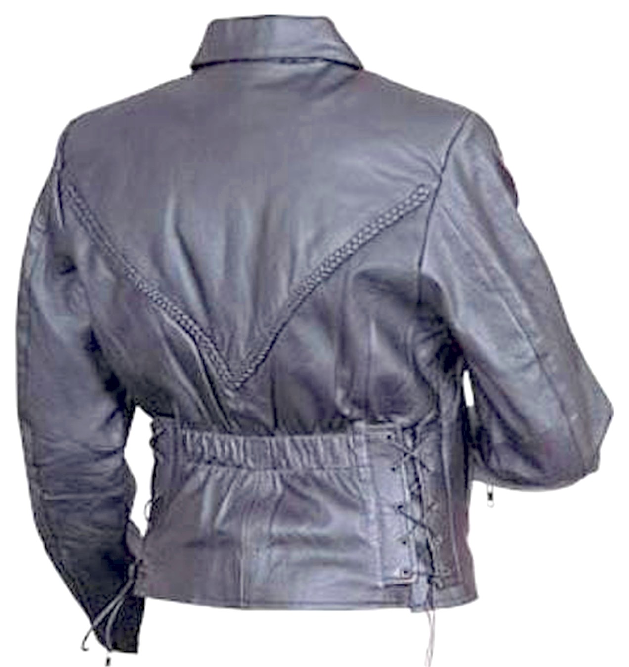 This stylish riding jacket features leather braiding on the front and back.