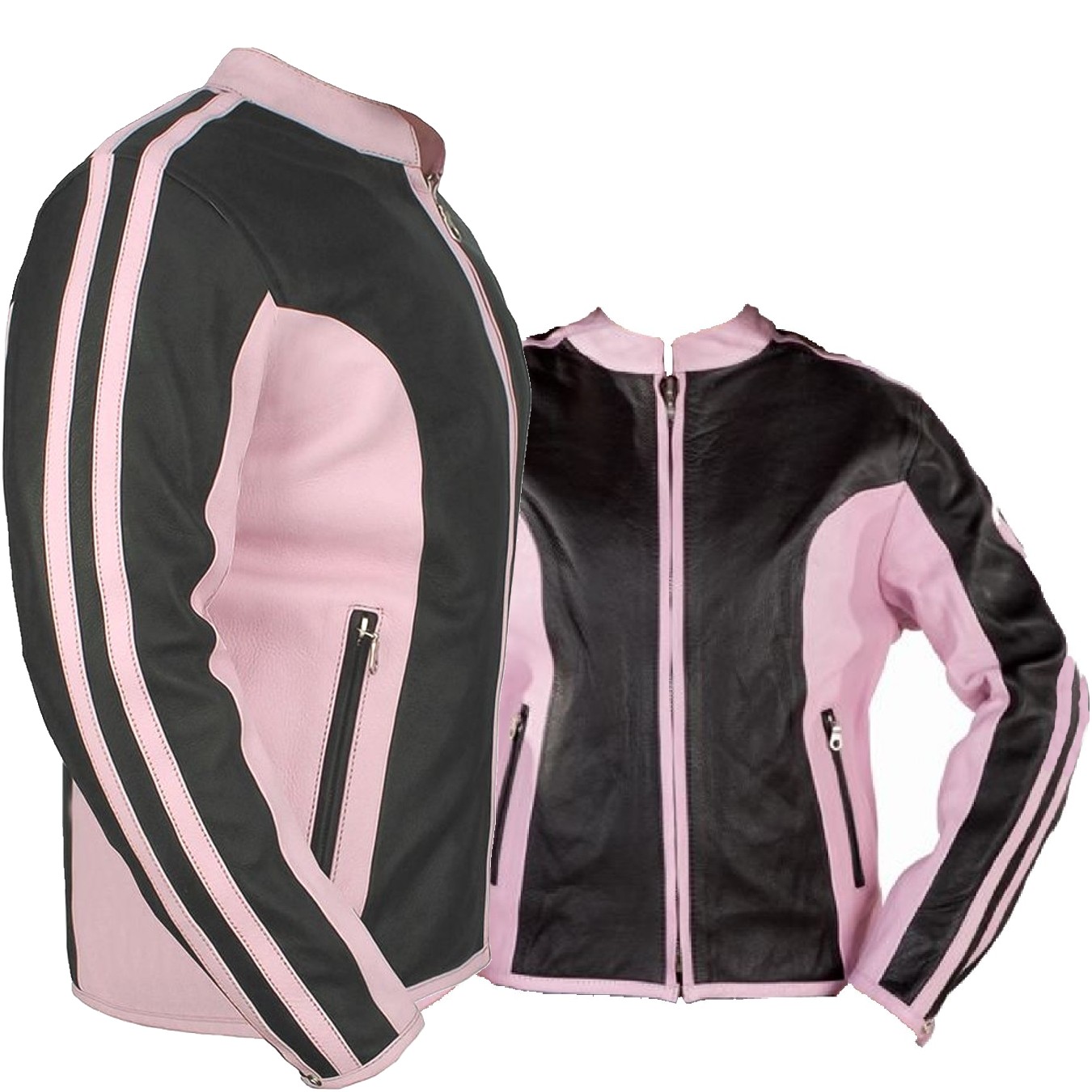 Ladies Black & Pink Leather Racer/Cruiser Style Motorcycle Jacket – Sizes XS to 4XL