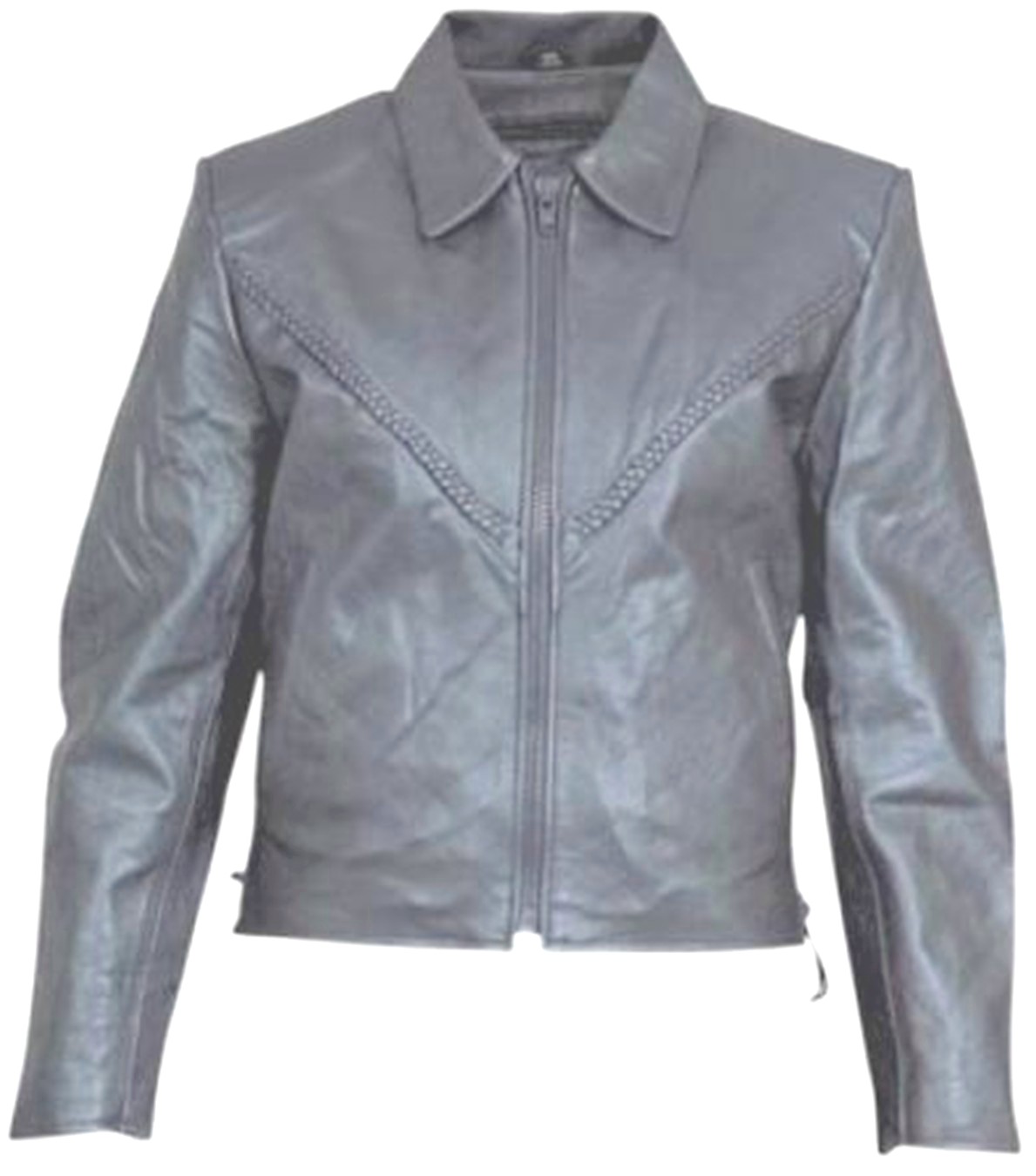 Ladies Lambskin Leather Jacket with Braid Trim – Sizes XS to 5XL