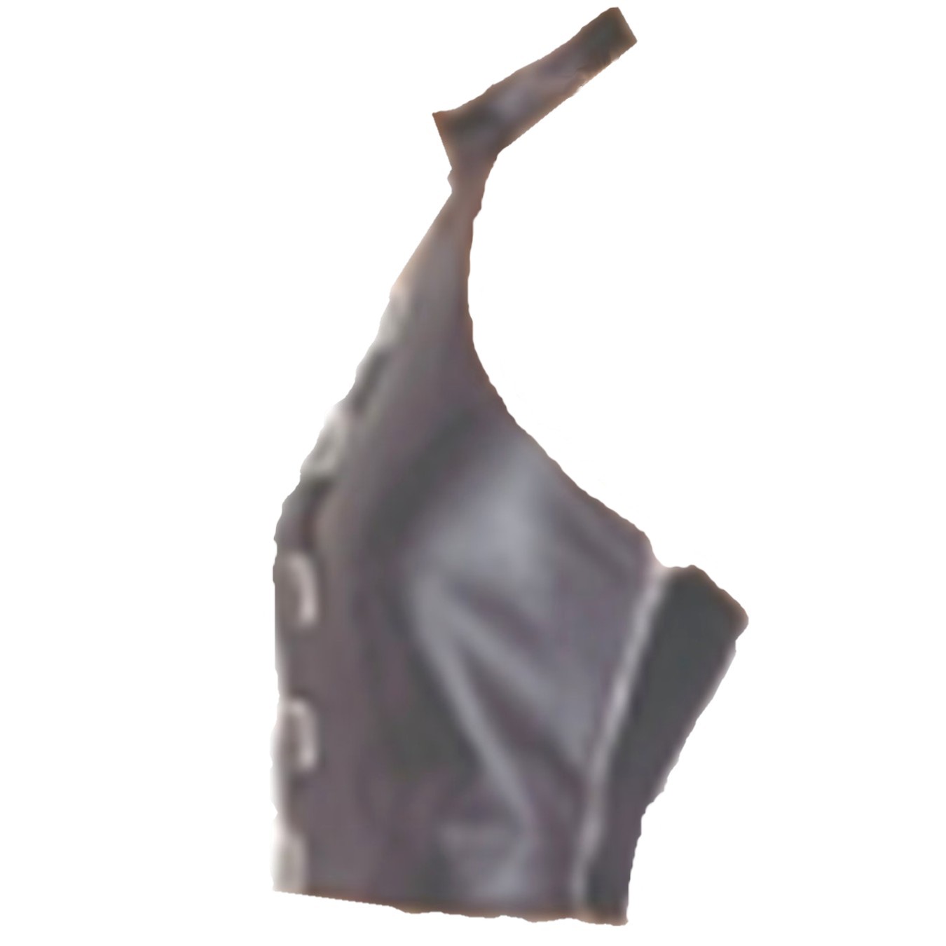 Look HOT at the next biker rally or party in this sexy halter top. Black cowhide leather women’s halter top with 5 buckles in the front that you can adjust to wear as daring as you choose. This top features an easy on or off with the side zipper and Snap closure at the neck.