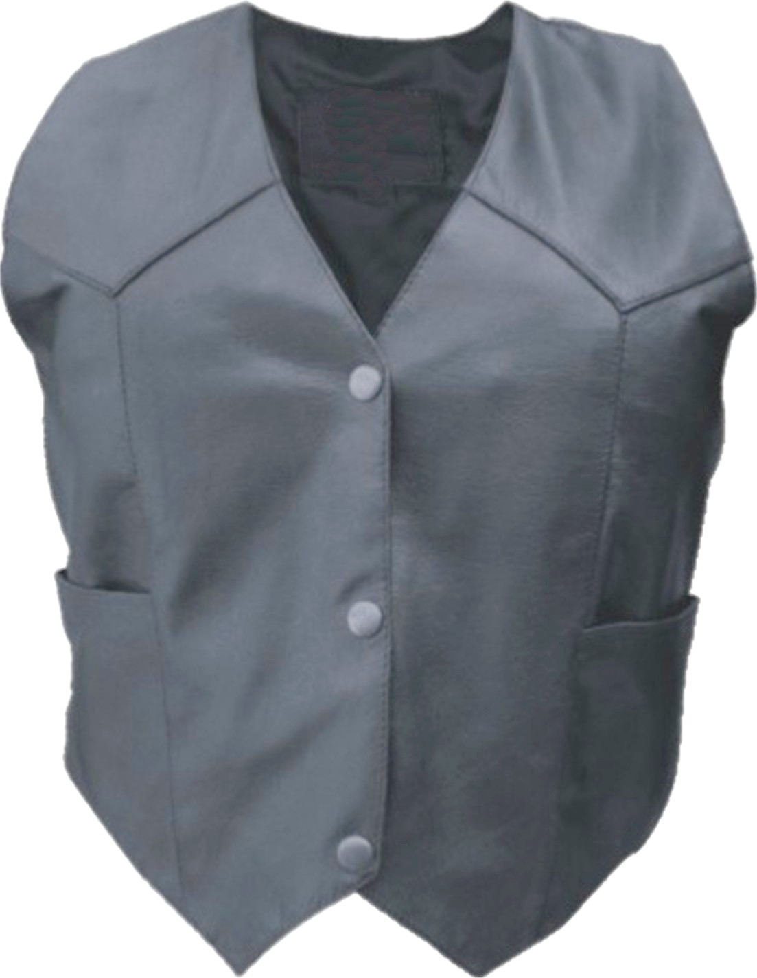 This black basic leather vest is made from lambskin leather for that ultra soft feel. Traditionally styled, this vest is fully lined with snap closure, 2 inside pockets and 2 outside pockets.