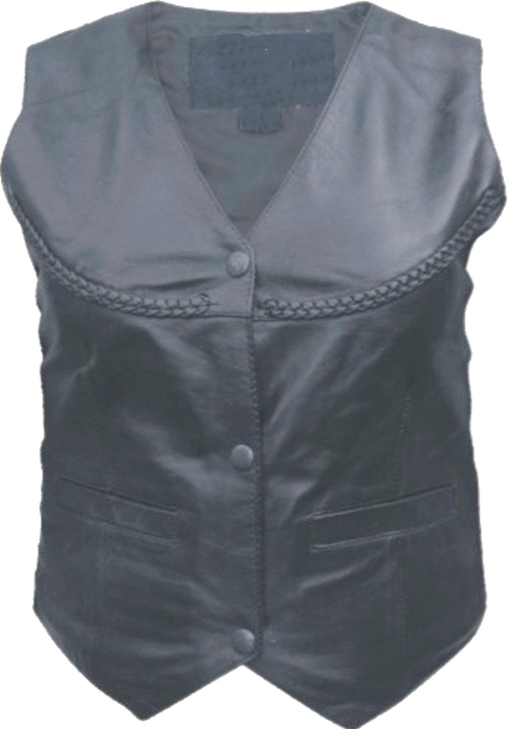 Ladies Lambskin Leather Vest with Braid Trim - Sizes XS to 3XL