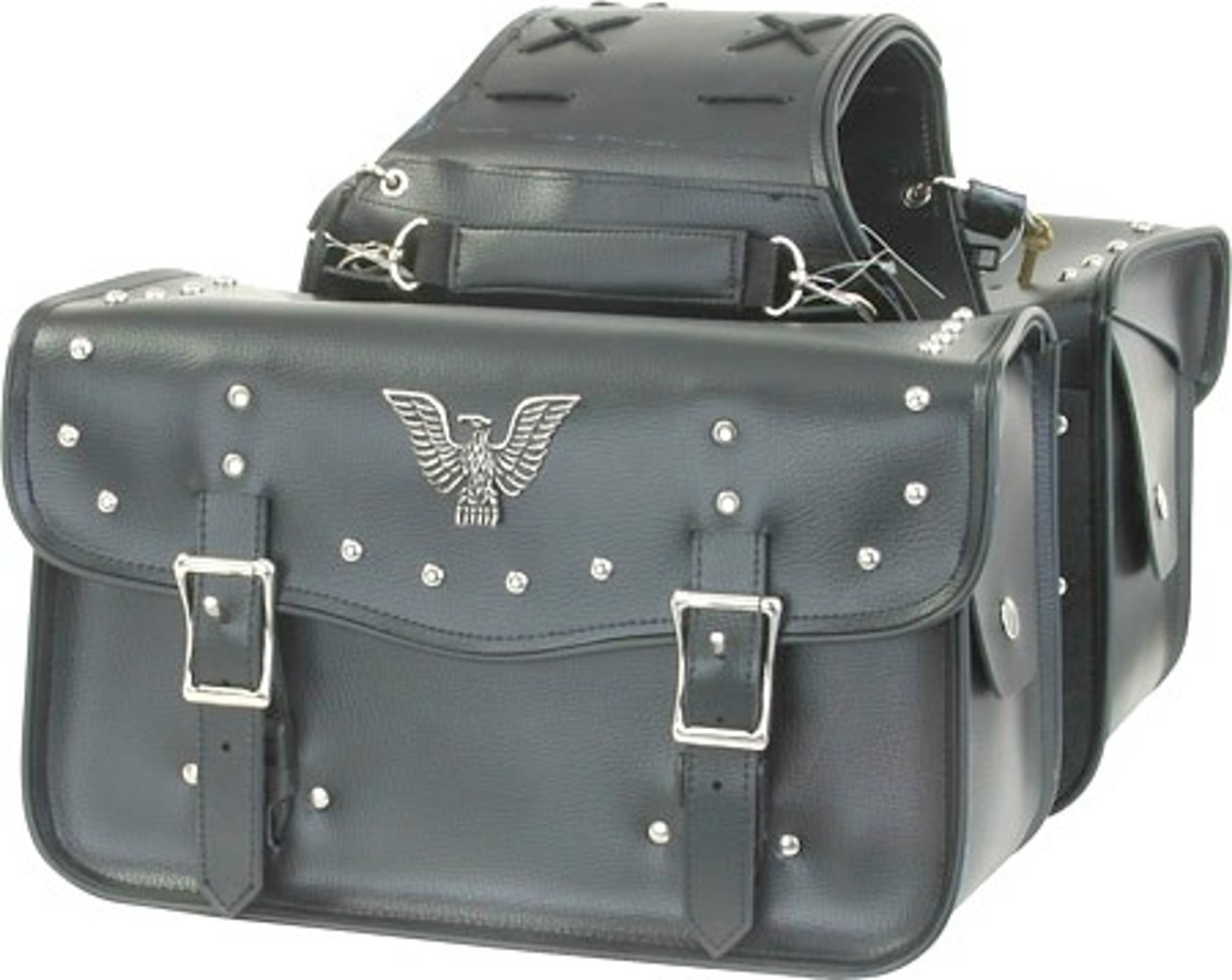 Throw Over Straight Motorcycle Saddlebags with Silver Studs & Eagle Trim – 14.25 x 6.75 x 8.75 inches