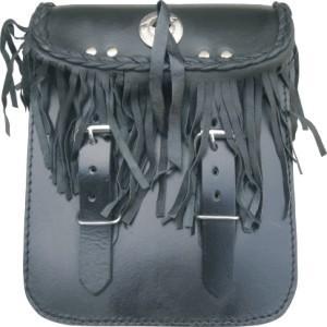 Medium Leather Sissy Bar Bag with Fringe, Braided Leather Trim & Conchos