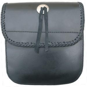 Medium Leather Sissy Bar Bag with Laced Leather Trim, Silver Conchos & Velcro Closure