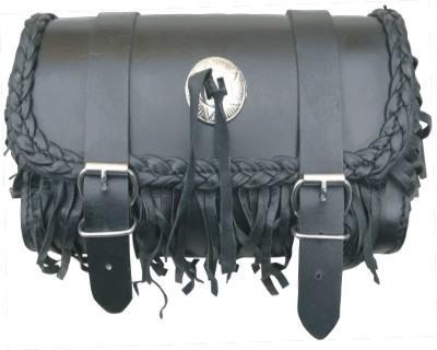> Medium Leather Tool Bag with Fringe, Braided Leather & Conchos Trim – Size 10 X 6 ½ X 3 ½ inches