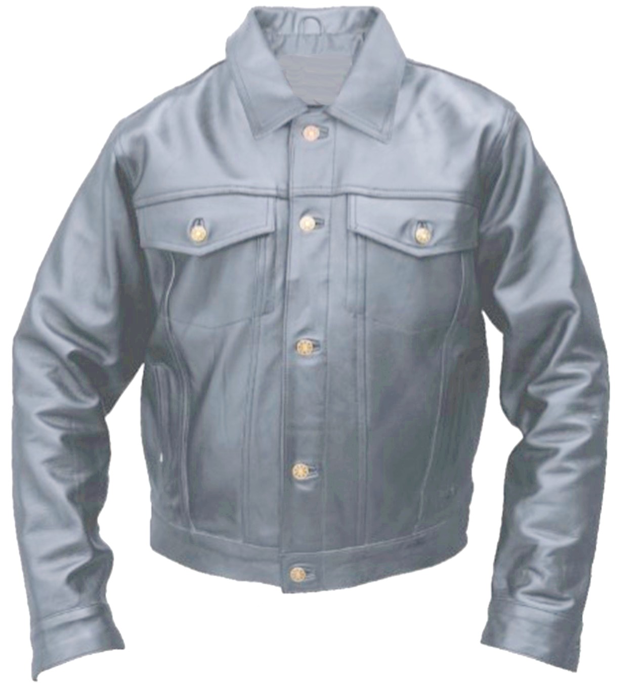 Men's Buffalo Leather Denim Style Button Jacket - Sizes S to 3XL