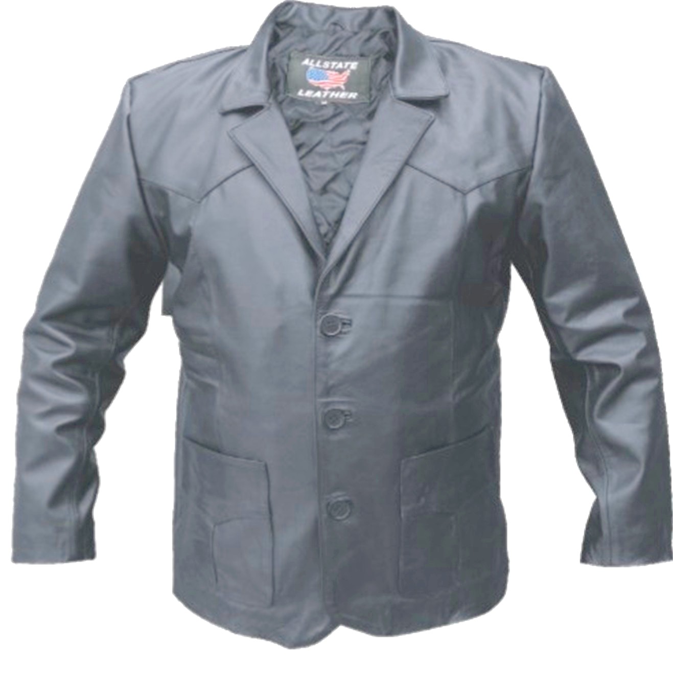 Men’s Black Light Weight Buffalo Leather Three Button Dress Blazer - Sizes S to 5XL