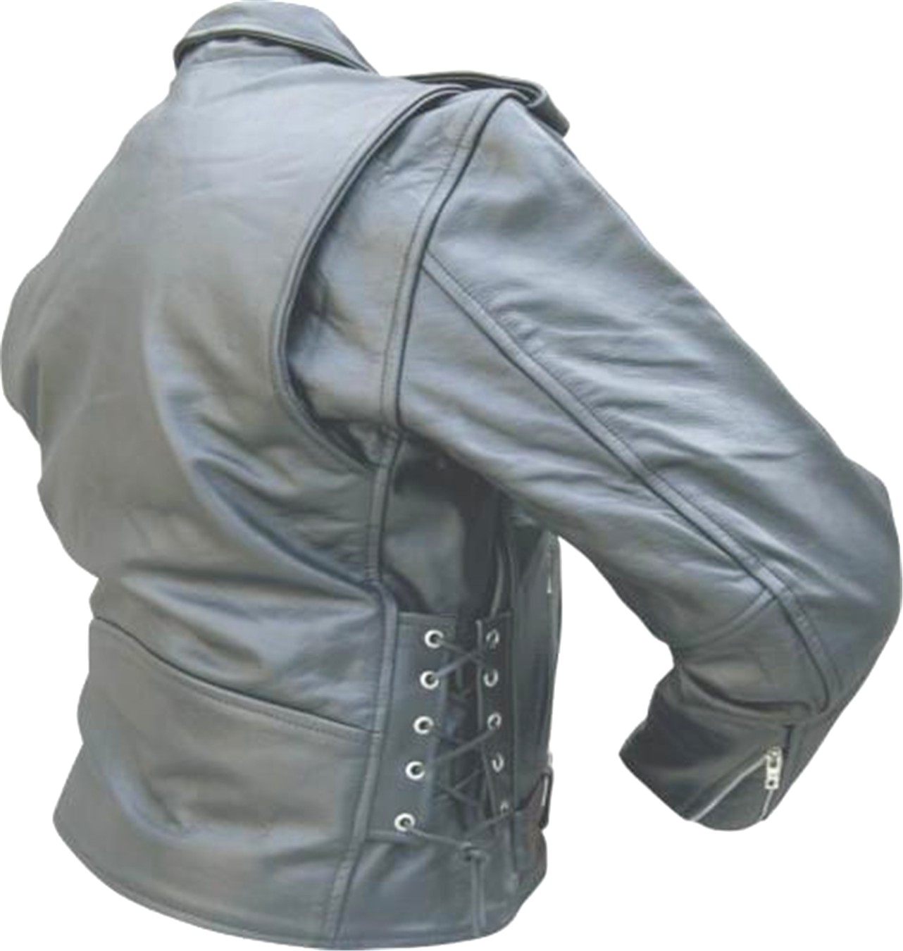 Men's Black Cowhide Leather Classic Motorcycle Jacket with Zip-out liner & side laces - Sizes 36 to 60