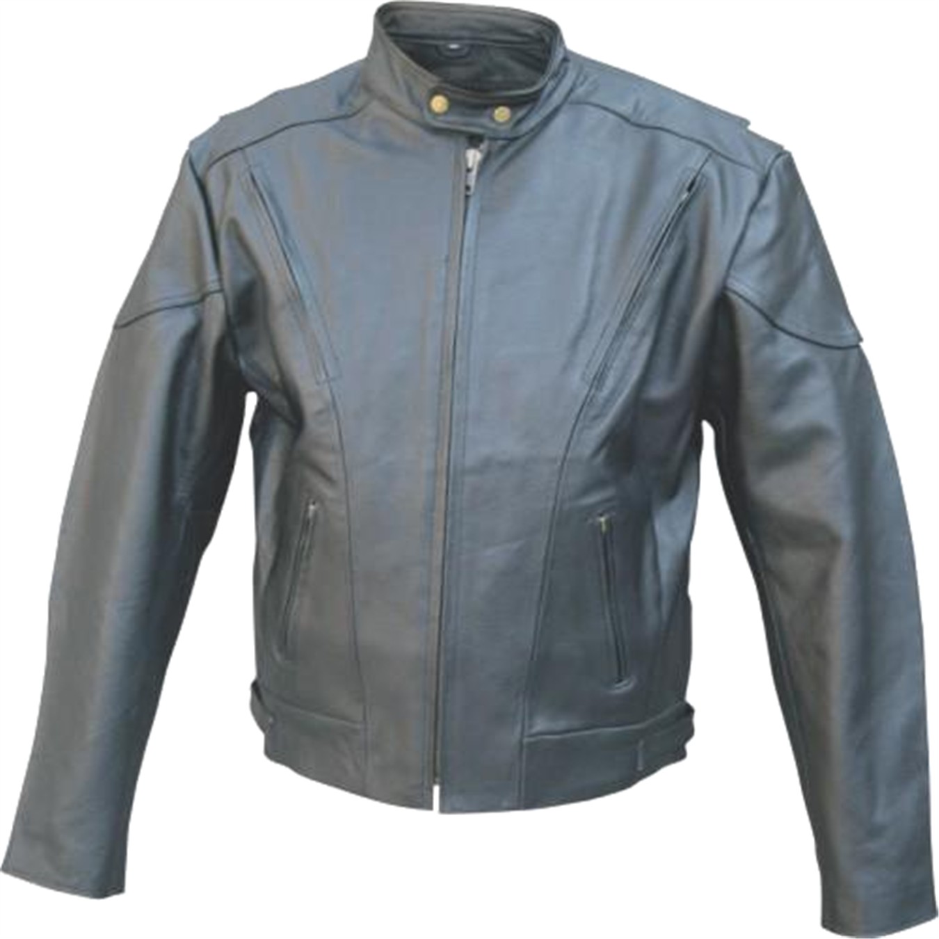 Men's Black Drum Dyed Naked Cowhide Leather Touring Jacket with Euro Collar, Zip-out liner, Vents & Side Zippers - Sizes 40 to 60