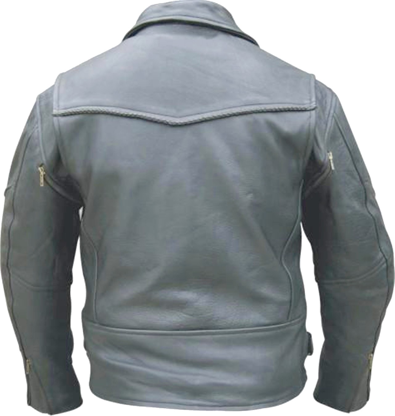 This black leather jacket is made from drum dyed naked cowhide leather for uniformity of color as well as durability and strength. It will provide years of use, and it never goes out of style. This biker jacket is fashioned in the traditional MC jacket style with braid trim. It has an abundance of pockets to include a gun pocket for safe and discreet transport. The hook and loop closures on the waist offers a custom fit. The full sleeve zip-out liner, snap down lapels and air vents makes this a great jacket for all seasons. The zippers are YKK brand.