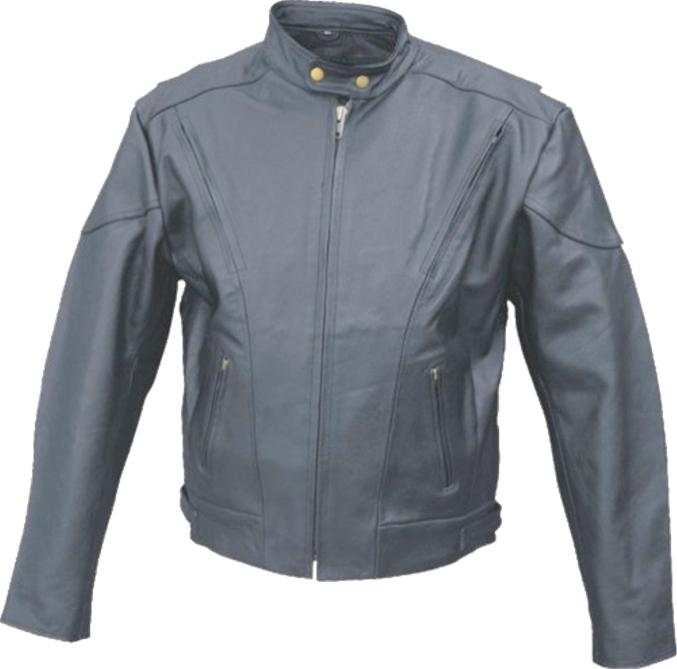 Men's Black Analine Cowhide Leather Touring Jacket with Euro Collar, Zip-out liner, Vents & Side Zippers - Sizes 40 to 60