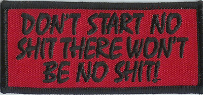 DON'T START NO SHIT THERE WON'T BE NO SHIT! - EMBROIDERED PATCH - 2 COLORS TO CHOOSE FROM
