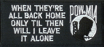 > POW/MIA WHEN THEY'RE ALL BACK HOME ONLY TIL THEN WILL I LEAVE IT ALONE - EMBROIDERED PATCH