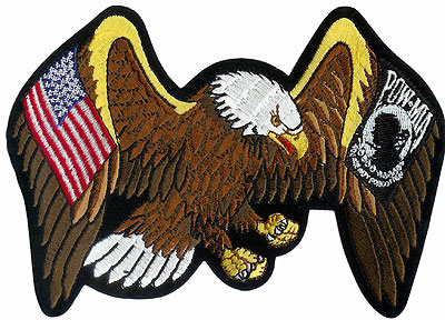 EAGLE WITH USA FLAG & POW/MIA FLAG - EMBROIDERED PATCH - 3 SIZES AVAILABLE