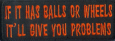 > IF IT HAS BALLS OR WHEELS IT'LL GIVE YOU PROBLEMS - EMBROIDERED PATCH