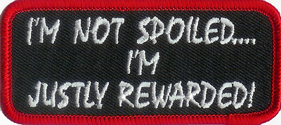 I'M NOT SPOILED.... I'M JUSTLY REWARDED! - EMBROIDERED PATCH