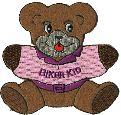 BIKER KID BEAR with PINK SHIRT - EMBROIDERED PATCH