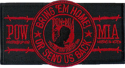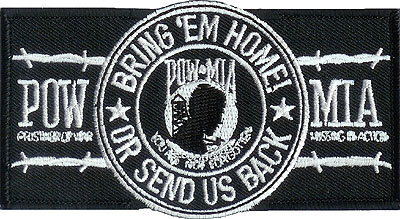 > POW/MIA BRING 'EM HOME OR SEND US BACK - EMBROIDERED PATCH - CHOOSE RED OR WHITE LETTERING