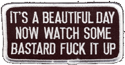 > IT'S A BEAUTIFUL DAY NOW WATCH SOME BASTARD FUCK IT UP - EMBROIDERED PATCH