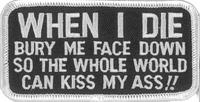 > WHEN I DIE BURY ME FACE DOWN SO THE WHOLE WORLD CAN KISS MY ASS! - EMBROIDERED PATCH