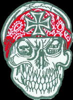 SKULL with RED BANDANNA & CROSS - EMBROIDERED PATCH - 3 SIZES AVAILABLE