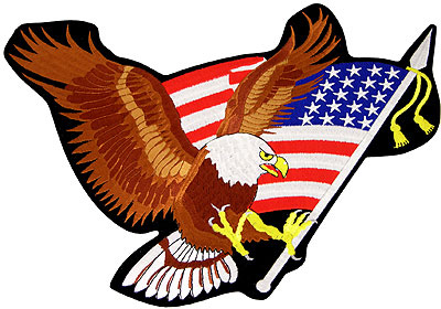 LARGE EAGLE IN FLIGHT WITH AMERICAN FLAG - EMBROIDERED PATCH - CHOOSE YOUR COLOR!