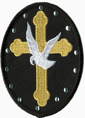 > CROSS WITH DOVE & STUDS - EMBROIDERED PATCH