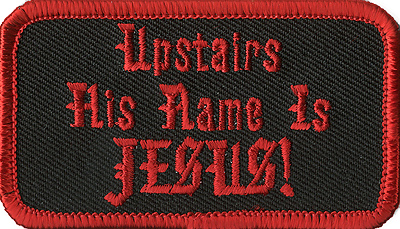 > UPSTAIRS HIS NAME IS JESUS - EMBROIDERED PATCH