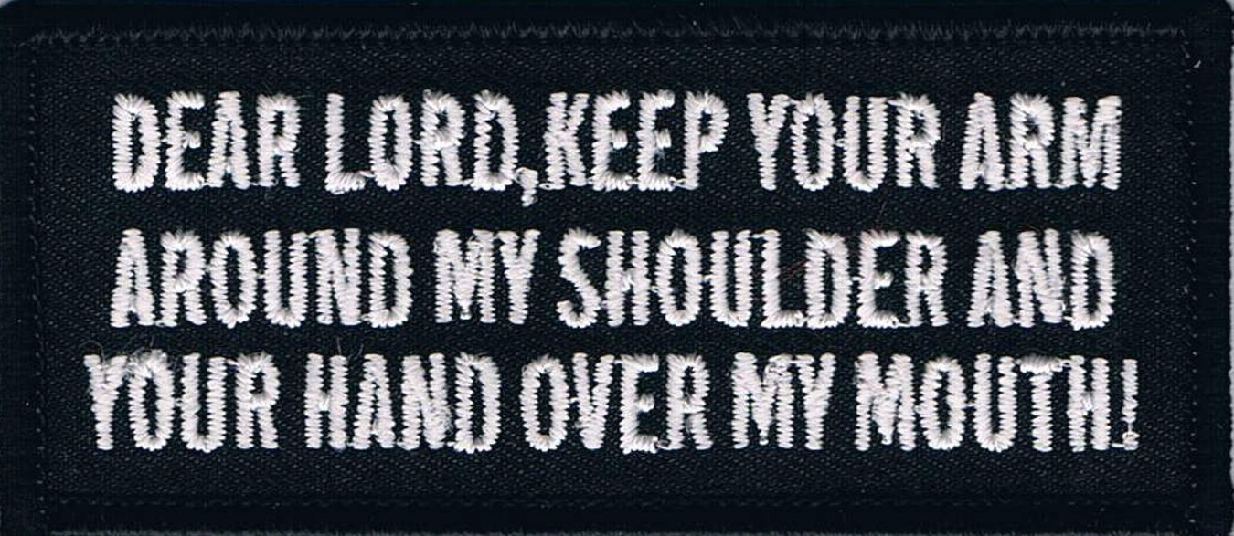 DEAR LORD, KEEP YOUR ARM AROUND MY SHOULDER AND YOUR HAND OVER MY MOUTH! - EMBROIDERED PATCH