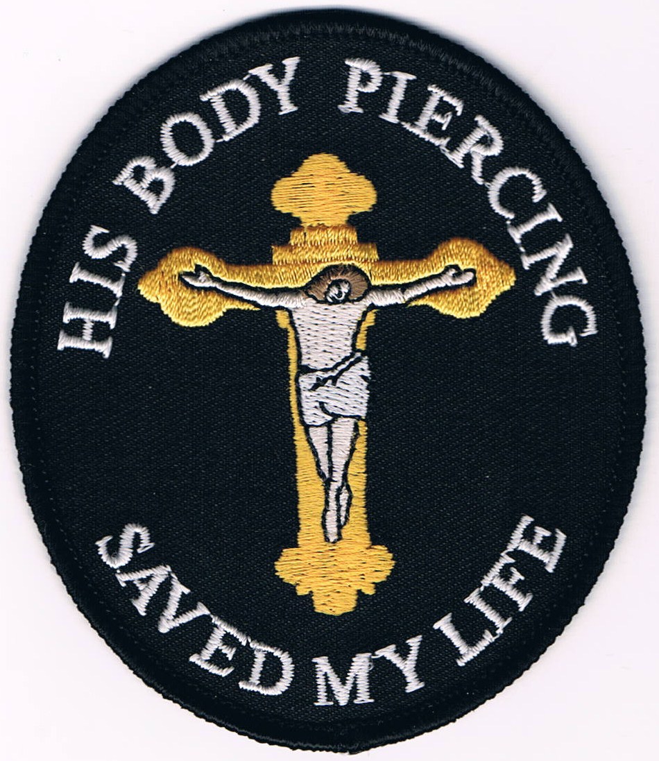 > HIS BODY PIERCING SAVED MY LIFE - EMBROIDERED PATCH