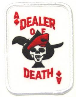 ACE OF SPADES DEALER OF DEATH - EMBROIDERED PATCH – BLACK OR WHITE OUTLINE
