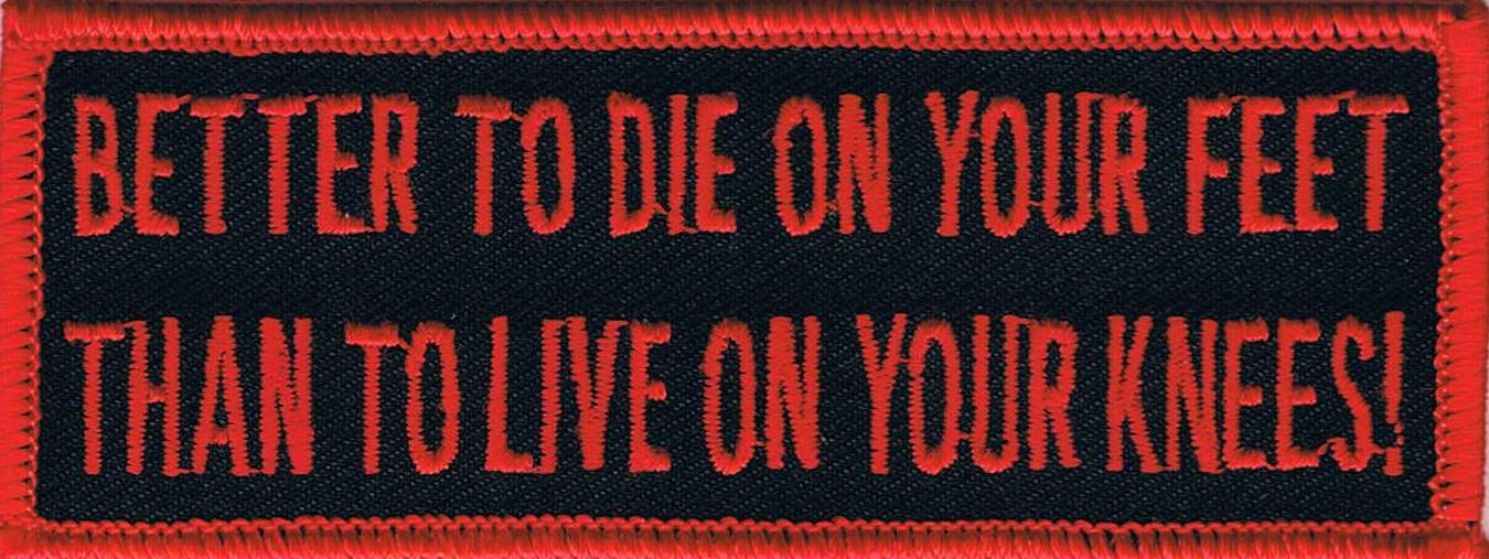 BETTER TO DIE ON YOUR FEET THAN TO LIVE ON YOUR KNEES! - EMBROIDERED PATCH