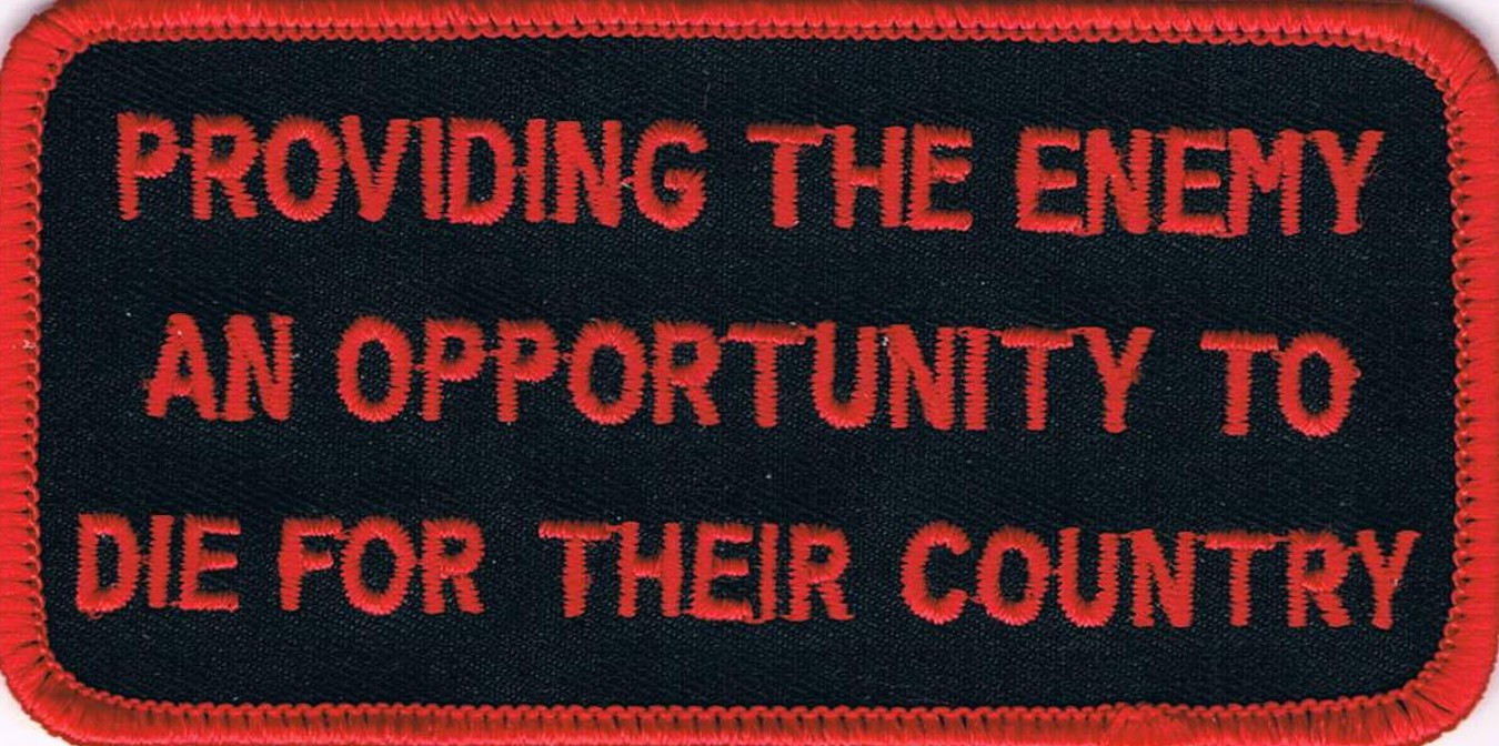 > PROVIDING THE ENEMY AN OPPORTUNITY TO DIE FOR THEIR COUNTRY - EMBROIDERED PATCH