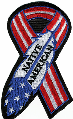 NATIVE AMERICAN PATRIOTIC RIBBON - EMBROIDERED PATCH