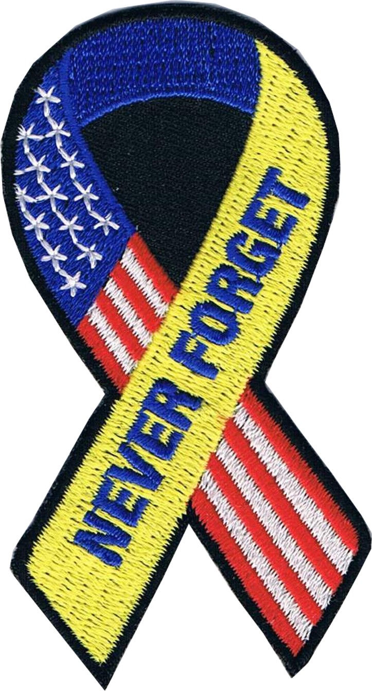 AMERICAN FLAG AND YELLOW RIBBON NEVER FORGET - EMBROIDERED PATCH