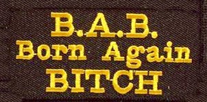 > B.A.B.= BORN AGAIN BITCH - EMBROIDERED PATCH